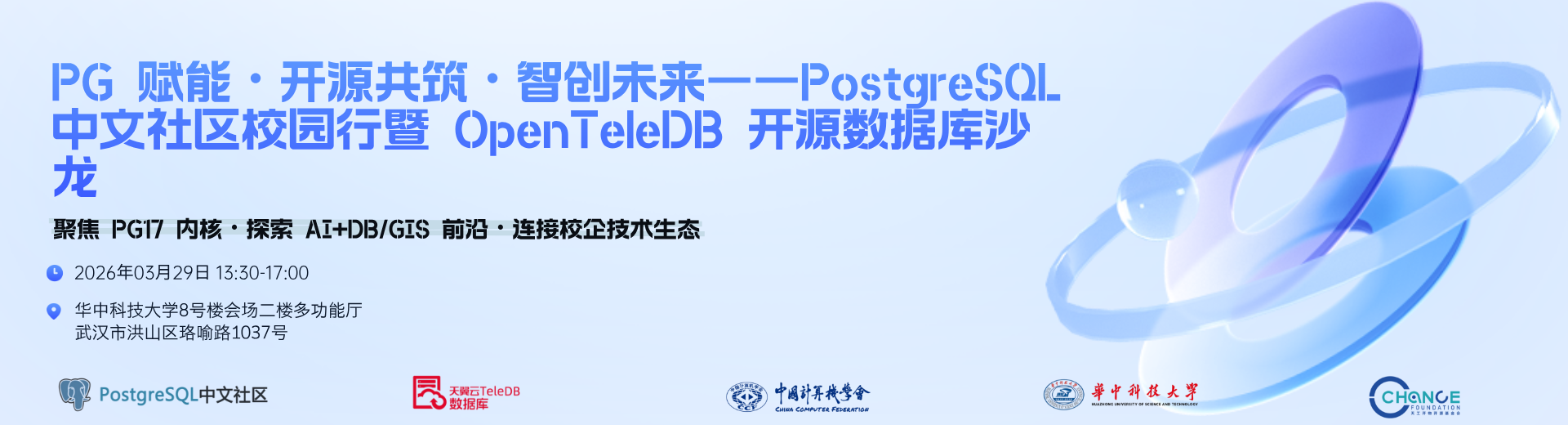 11 月 16 日下午,由PostgreSQL中文社区联合天翼云OpenTeleDB 、武汉大学、武汉理工大学、CCF共同主办的 “PostgreSQL中文社区校园行暨OpenTeleDB 开源数据沙龙” 在武汉圆满落幕。作为运营商级开源数据库技术走进高校的一次务实实践,本次活动吸引超 200 名高校师生、数据库开发者及行业研究者现场参与,天翼云凭借 OpenTeleDB 技术突破与产学研协同方案,成为推动 PostgreSQL 生态发展的重要参与力量。