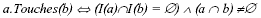 g1g2の共通部分の点がg1g2の境界の結合上にある場合にTRUEを返します。ST_Touchesは、面/面, 線/線, 線/面, 点/面, 点/線の全てを受け付けますが、点/点は受け付けません