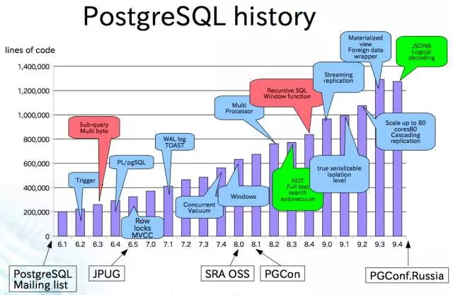 早在1998年在日本发行了第一本针对PostgreSQL的技术书籍,同时我们可以看到,PostgreSQL 6.5版本发生时(约为1999年),日本就已经组建了JPUG日本PostgreSQL用户会,相比中国用户会建立的2011年早了足足12年。