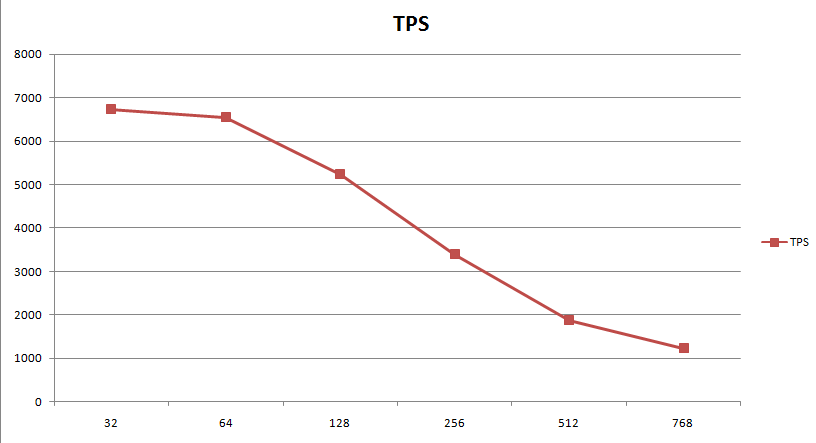 测试的时候,N从32增大到768,取TPS。结果如下: