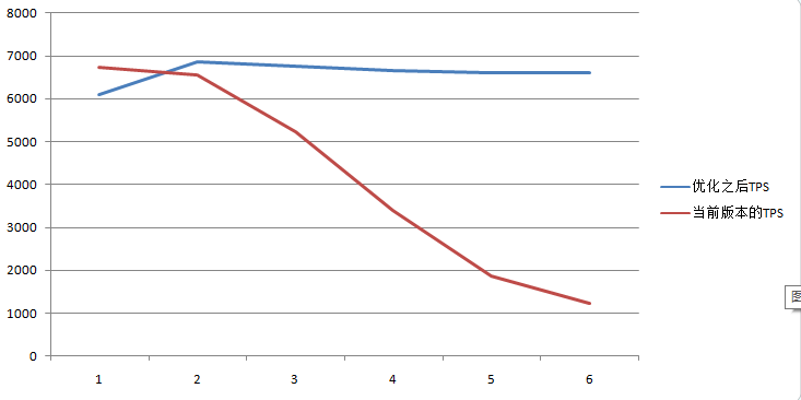 采用前面的测试方法,来获取TPS。和前面的对比图如下: