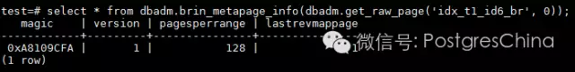 4. 最后一个revmap page的位置,本例是1。这也和我们之前获取page type的数据相匹配,第二个page也就是page 1是revmap page。而之后的两个page则为regular page。PG中,page的编号从0开始;
