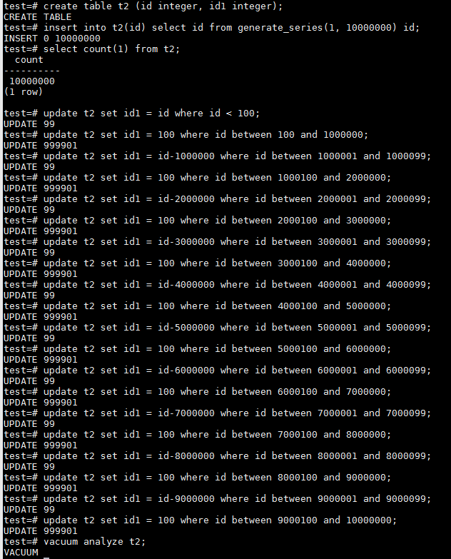 回到本文的主题,我们构造了一个数据严重偏移的数据分布情况。表中有10,000,000的数据量,在id1这个字段上总共有100个唯一值,但1-99这些值只重复了10次;而id1=100却有9,999,010行,占了总数据量的99.9901%。很明显,对于id1=100这个值使用BTREE索引是完全没有必要的,不仅会消耗大量的存储空间,也无法带来查询性能的提升。这正是Partial Index适用的场景。