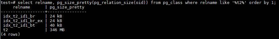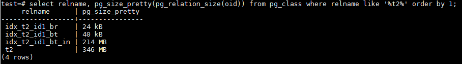 - 普通的BRIN索引idx_t2_id1_br占用了24KB的空间;