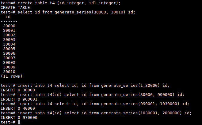 先来构造我们的案例,创建一张表,并且插入2,000,001行记录。其中id字段是顺序递增的;id1字段的值绝大部分和id相同,存在少许NULL值,用于创建BRIN索引。具体如下图: