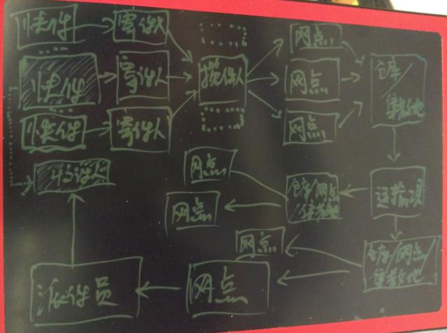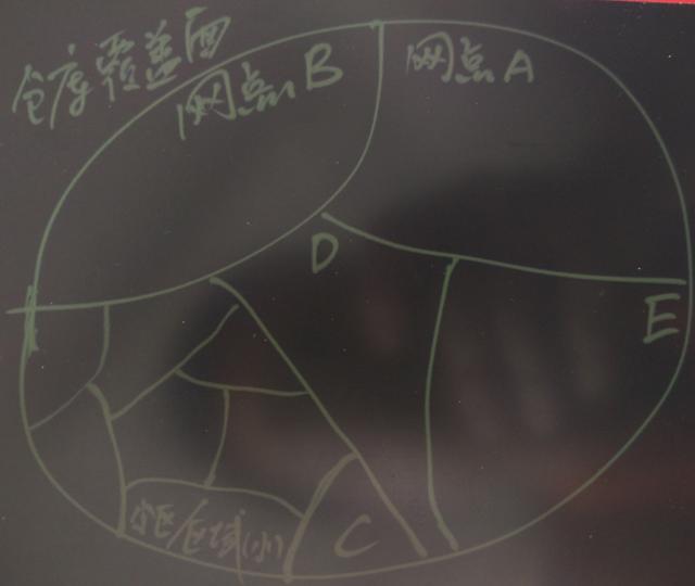 货物在抵达目标仓库后,首先要将货物分拣到派件的网点。 其实也是一个点面判断的过程,网点覆盖的派件范围为面,快件则为点,点面判断找出对应的网点。 从仓库到网点,也可以使用仓库建流转的原理,计算出最佳线路。货车只负责2个网点之间的货物流转即可。