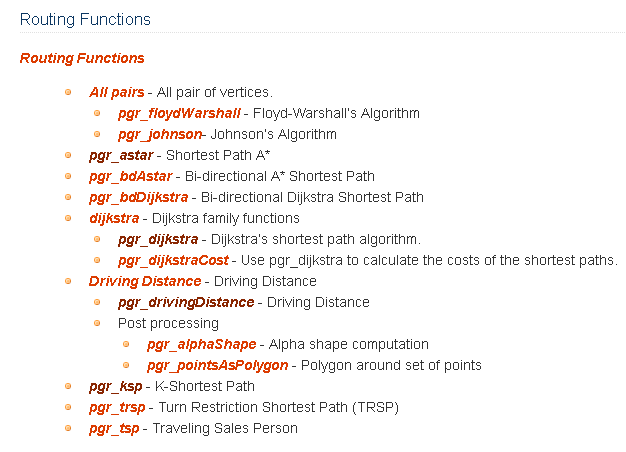 pgrouting支持的最佳路径算法很多,http://docs.pgrouting.org/2.2/en/doc/index.html