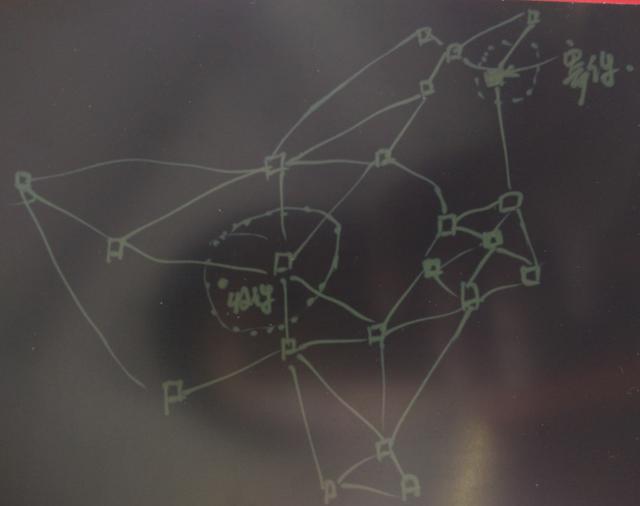 假设上图为仓库的位置,两个仓库之间如果开通了线路的话,就以线段连接起来。每个仓库负责一个区域,这个区域是一个几何的图形。 通过寄件人和收件人的位置,与仓库的区域进行点面判断,找出寄件人的仓库与收件人的仓库。 快件为点,仓库为面,寄件时根据寄件人填写的寄件和收件信息转换为寄件和收件两个经纬度,通过这两个经纬度与快递公司的仓库表进行点面包含的判断匹配,就可以找出快件对应的起点和重点的仓库。