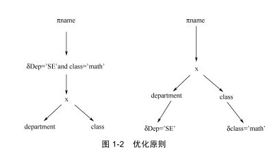 逻辑优化阶段中,会对所有导致查询变慢的语句进行等价变换,依据数据库 理论中给出的经典优化策略:选择下推,从而尽可能减少中间结果的产生。即所 谓的先做选择操作,后做投影操作。优化原则如图 1-‐2 所示。