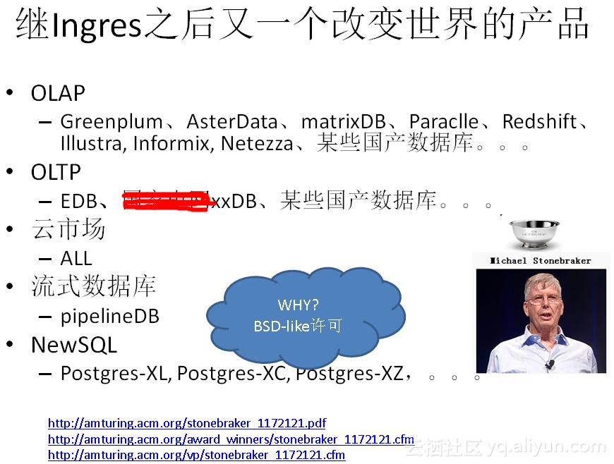 PostgreSQL是一个历史悠久的数据库产品,起源于伯克利大小,BSD-LIKE许可,非常的人性化,很多产品是基于PG的。