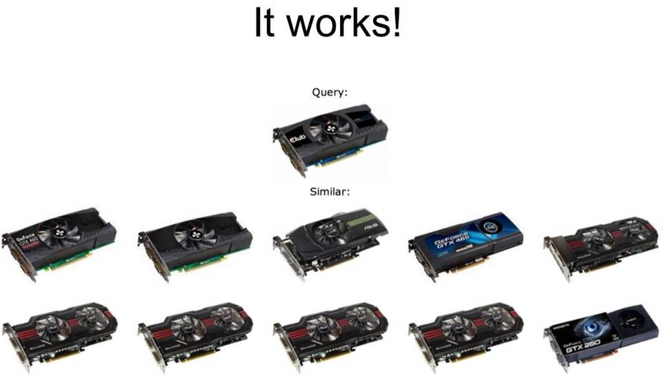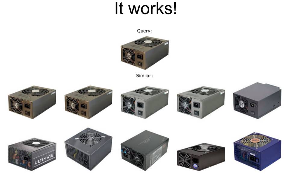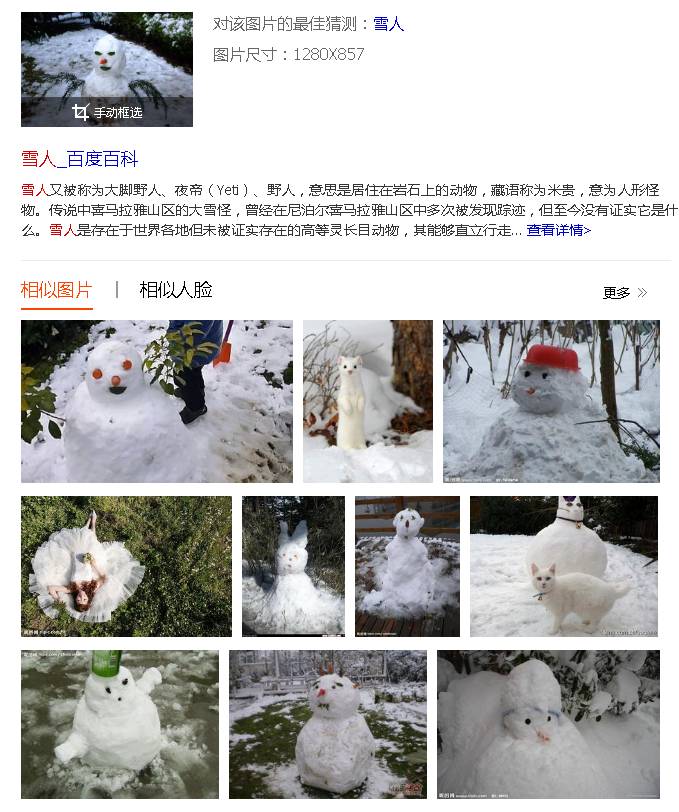 例如在搜索引擎提供的接口中上层了一张雪人的图片,搜出来一堆和雪人近似的图片。