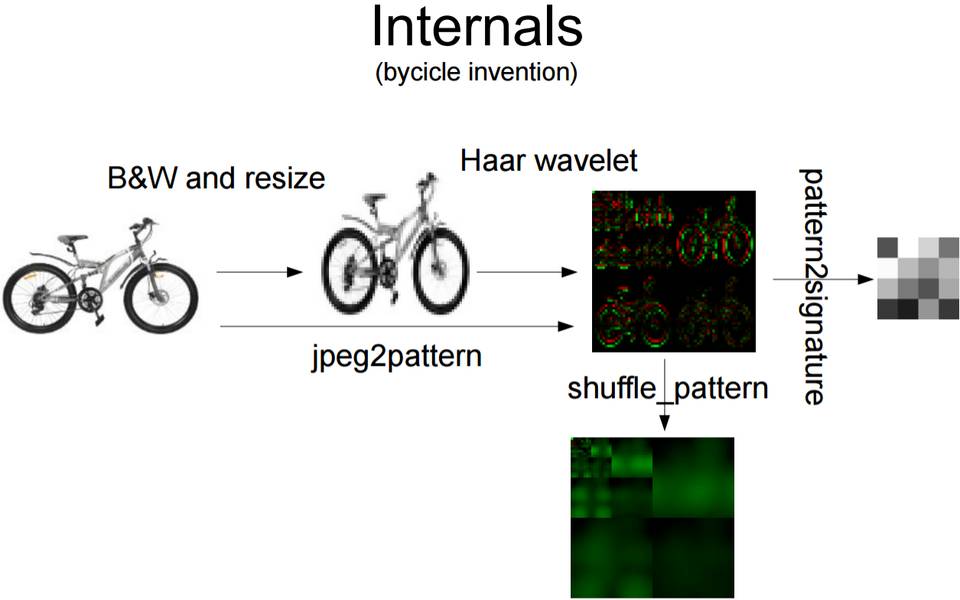 PostgreSQL的图像搜索插件使用了非常主流的Haar wavelet技术对图像进行变换后存储,可以参考WIKI和一篇关于HW的文献。