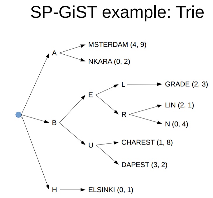 1. nodes无交叉,(GiST是有交叉的,只是做了聚集,但是nodes(不同的index page)包含的内容是有交叉的)。
