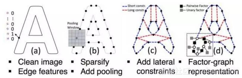 注意右下角的放大小图中的灰色方块一元因子(Unary factor),这是与水平细胞相似的关键。在字母验证码识别这个具体问题上,Vicarious基于生成型形状模型的系统能够只用1406张图片作为训练集,就超越了利用深度学习的800万图片达到的效果。