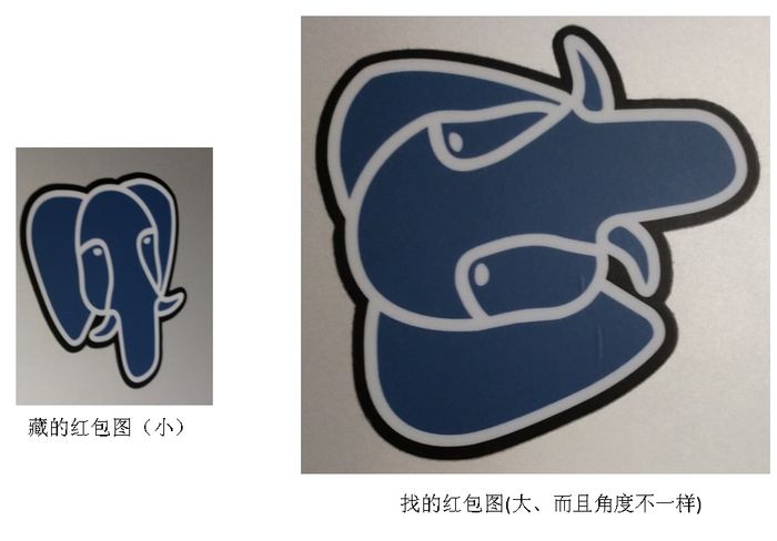 2. 图片相似度比较,也就是找红包的人拍的照片 与 藏红包时拍下的照片 进行比对,相似度达到一定程度时,表示红包被找到了。