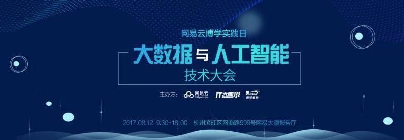 “网易博学实践日:大数据与人工智能技术大会”将于2017年8月12日在杭州举办。大会由网易,IT大咖说主办, 七牛云、Hadoop123、才云、科大讯飞协办。来自TensorFlow中文社区、才云科技、京东、百度、华为、网易、滴滴等社区和企业的专家大牛将为大家献上精彩演讲。大会将聚焦大数据人工智能的探索与应用,展示大数据与人工智能最新的技术创新与成就,为技术从业者、爱好者提供具有价值的交流平台,打造一场大数据与人工智能的技术盛宴。