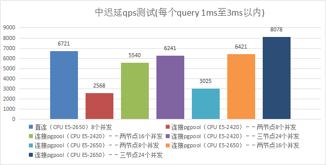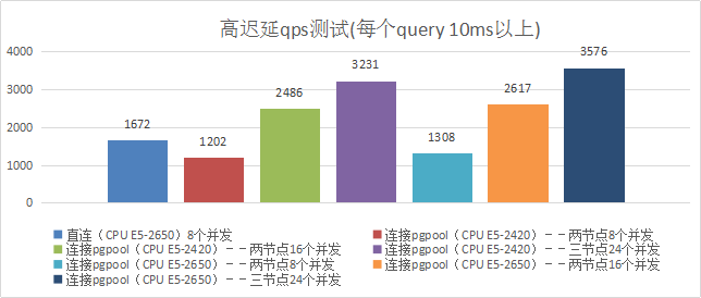 | 连接pgpool--三节点8个并发(pgpool与pg同一节点)0-0-1权重分发 | 13240 |